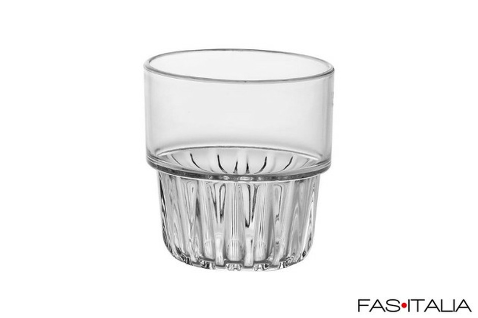 Realizzato in SAN, materiale plastico pregiato, offre una buona trasparenza e un aspetto elegante, simile al vetro, ma con una maggiore resistenza agli urti. Perfetto per servire acqua, succhi, bevande fresche o cocktail leggeri. Il design impilabile permette di ottimizzare lo spazio nei carrelli e nei punti ristoro, facilitando la gestione quotidiana del servizio. Leggero e maneggevole, è pratico da utilizzare anche in contesti ad alta affluenza.