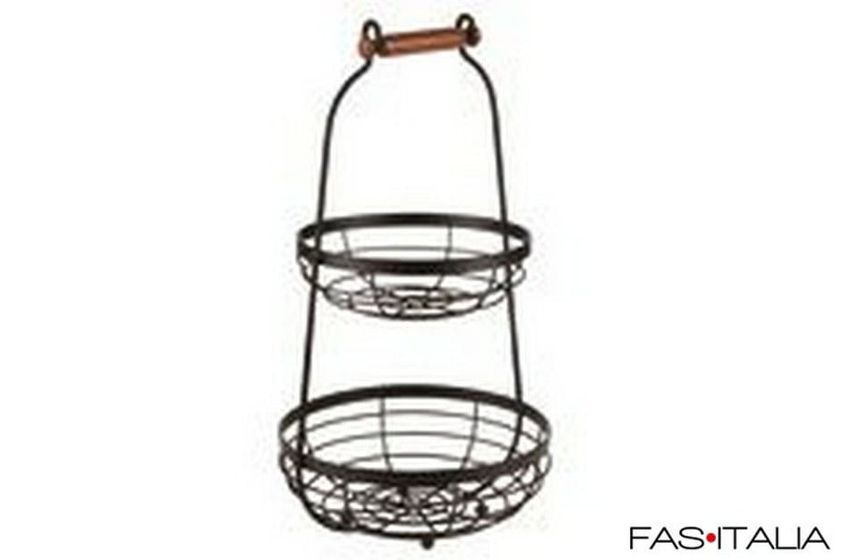 Alzata a 2 piani per frutta o prodotti da forno con cesti è pensata per sale colazioni di Hotel, Alberghi e strutture ricettive che desiderano un’esposizione elegante. La struttura misura 48 cm in altezza totale e include due cesti in metallo nero: uno da 22 cm di diametro e 6 cm di altezza; l’altro da 26 cm di diametro e 8 cm di altezza.