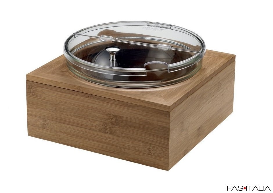 La base misura 26×26×11 cm (H) e integra materiali naturali come il bamboo per un aspetto caldo e coordinato al buffet.