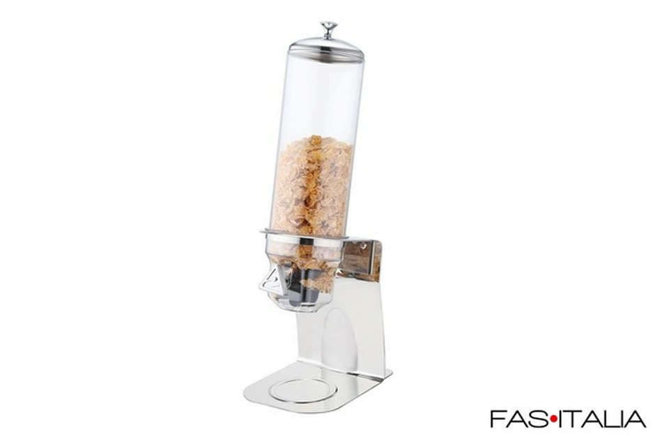 Dispenser cereali 4 lt è un accessorio ideale per buffet colazioni in Hotel. È composto da un supporto in acciaio inox e un corpo in policarbonato trasparente, dotato di coperchio ermetico che preserva la freschezza dei cereali e protegge da polvere e umidità.
