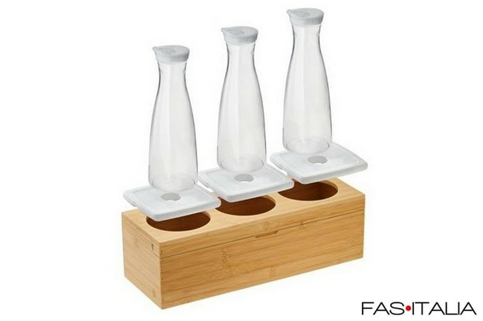 Set 3 caraffe refrigerate con base in bambù per buffet