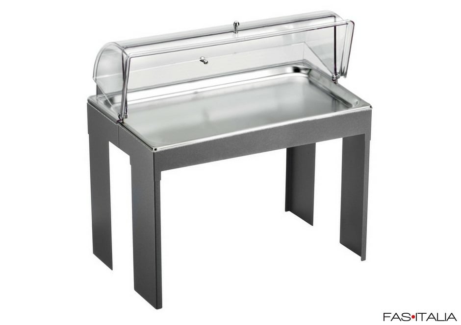 Il Vassoio refrigerato rialzato è la scelta ideale per buffet di Hotel e Alberghi che vogliono combinare freschezza, igiene ed efficienza. Grazie alla base in acciaio rialzata, permette di inserire al di sotto elementi aggiuntivi, sfruttando la verticalità e offrendo un’organizzazione salvaspazio del buffet.