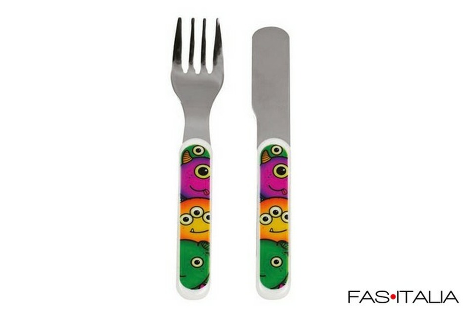 Le posate combinano acciaio inox e melamina, garantendo resistenza e praticità nell’uso quotidiano. Il manico colorato a tema mostriciattoli rende il momento del pasto più divertente e coinvolgente, favorendo autonomia e partecipazione.