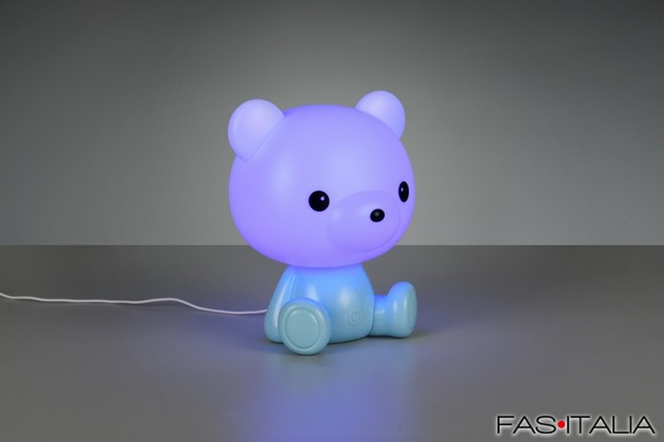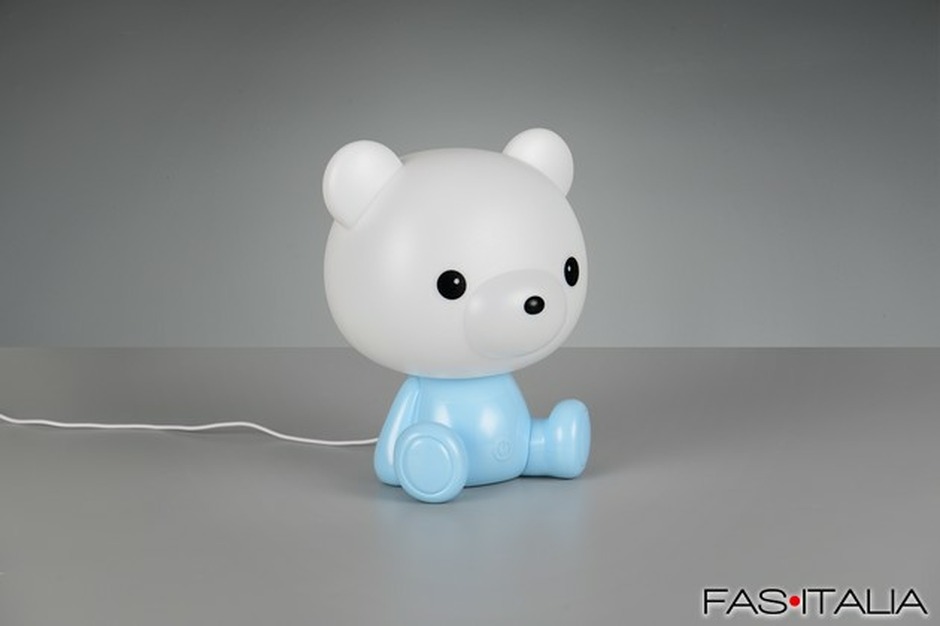 Realizzata in plastica bianca e blu, combina materiali di qualità e colori piacevoli. L’alimentazione tramite cavetto USB (incluso) la rende pratica e adatta all’utilizzo in camera, su comodini o tavolini.