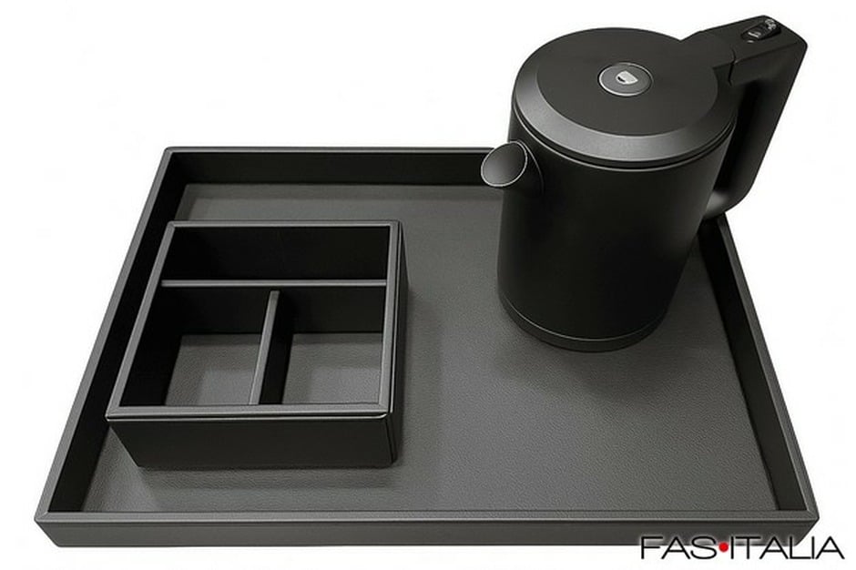 Vassoio di benvenuto per camere superior con bollitore 0,6 litri e portabustine. Questo set comprende: