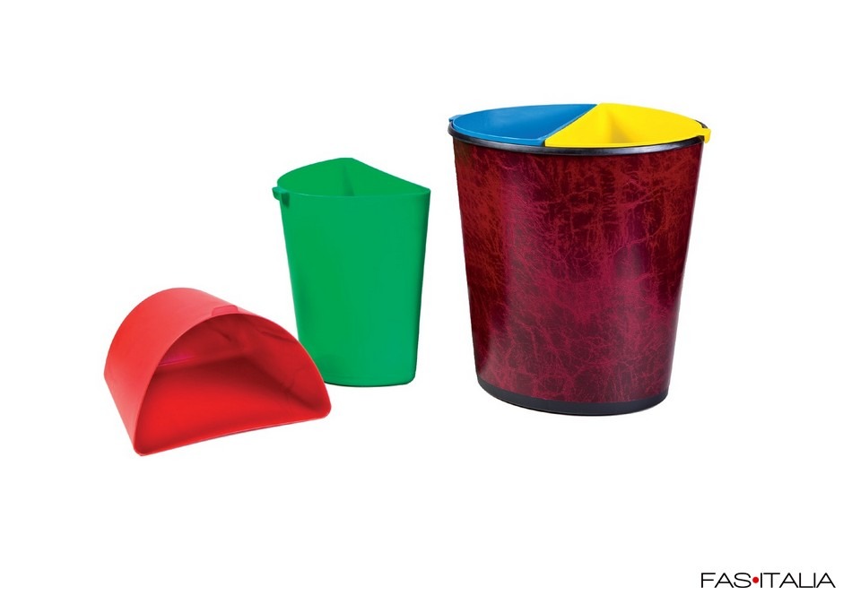 All’interno sono presenti due divisori in polipropilene, ciascuno da 3,5 litri, per facilitare la raccolta differenziata (ad esempio carta e plastica).