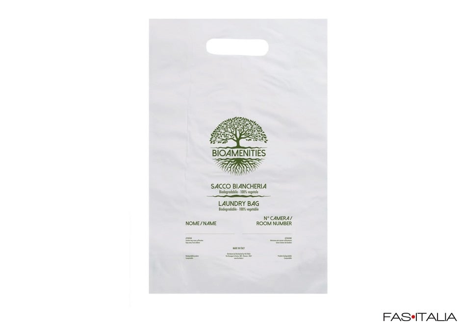 I Sacchetti biancheria biodegradabili sono ideali per il servizio lavanderia in Hotel, Alberghi e strutture che vogliono ridurre l’impatto ambientale. Sono realizzati in bioplastica vegetale a base di amido di patate, conformi alla norma EN 13432 per compostabilità industriale.
