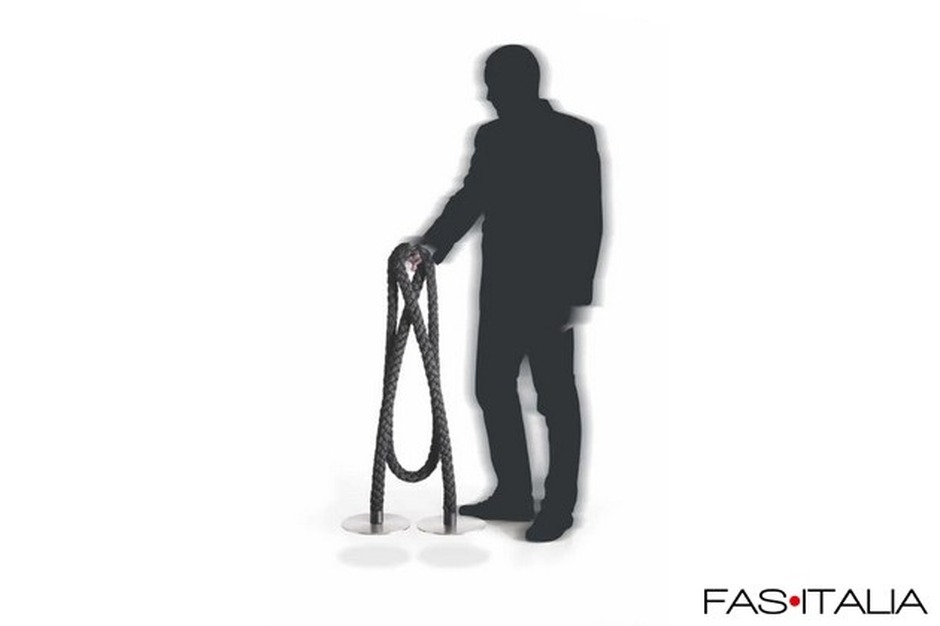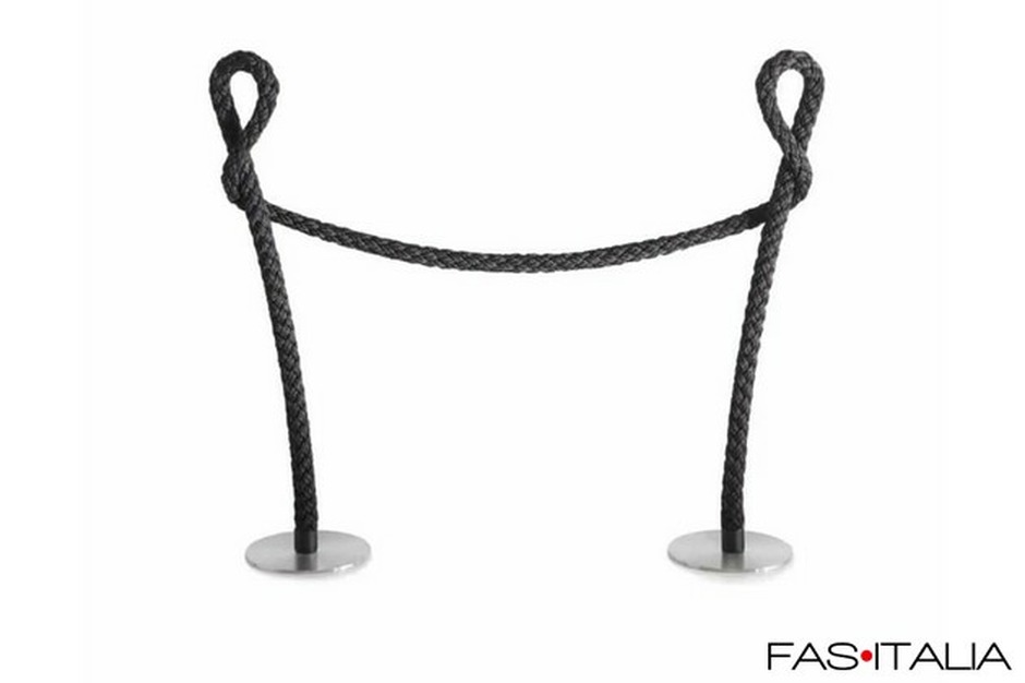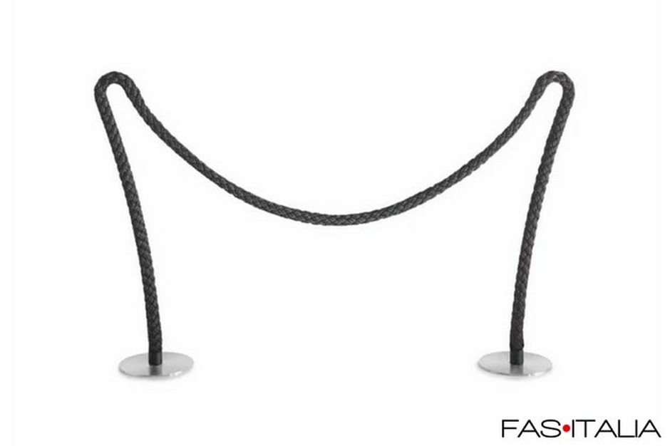 Le due colonnine sono unite da un cordone flessibile in tecnopolimero, modellabile e resistente. Questo sistema permette di creare configurazioni diverse per delimitare aree, definire file o organizzare percorsi nella Hall.