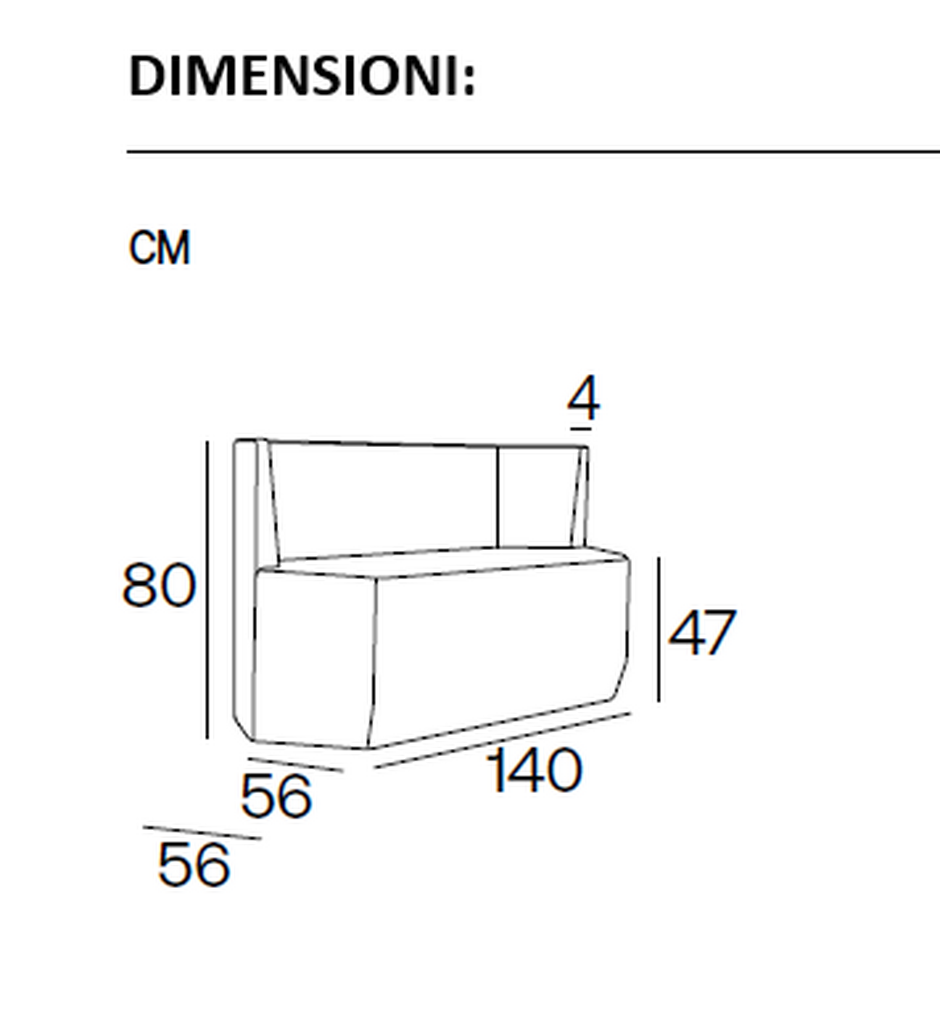 • Dimensioni: 56x140x80 cm (LxPXH), altezza seduta 47 cm
