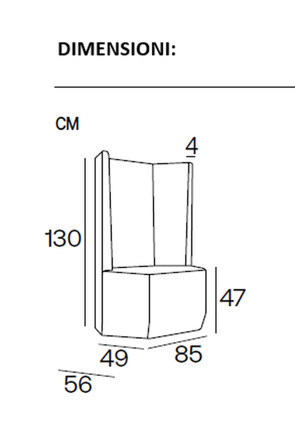 • Dimensioni: 85x56x130 cm (LxPxH), altezza seduta 47 cm