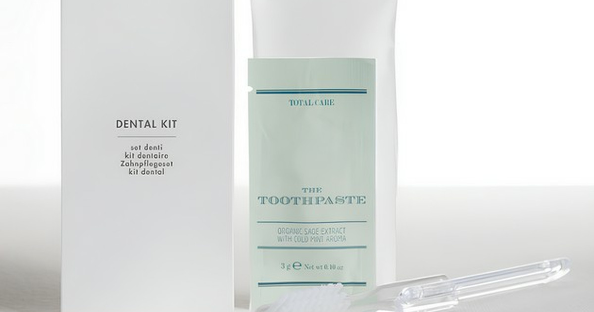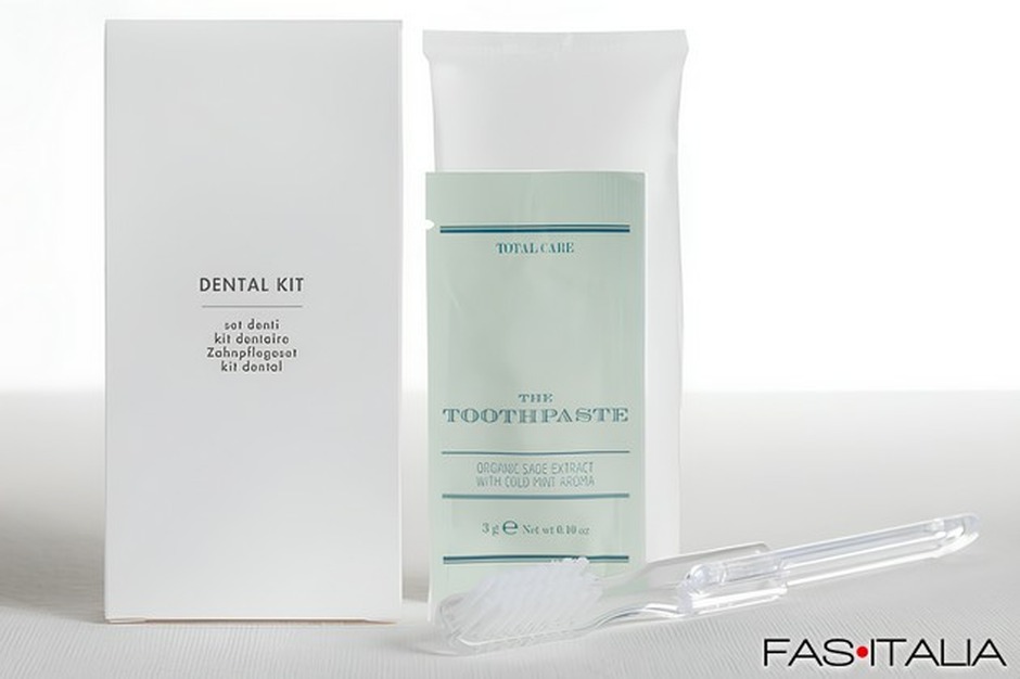 Il kit spazzolino e dentifricio include uno spazzolino componibile e una bustina di dentifricio da 3 grammi, una combinazione funzionale e apprezzata soprattutto per soggiorni brevi o per Ospiti in viaggio. Ogni set igiene orale monouso è confezionato singolarmente in un sacchetto di carta riciclata e inserito in un astucciò di carta, una scelta coerente con un approccio più attento all’ambiente.