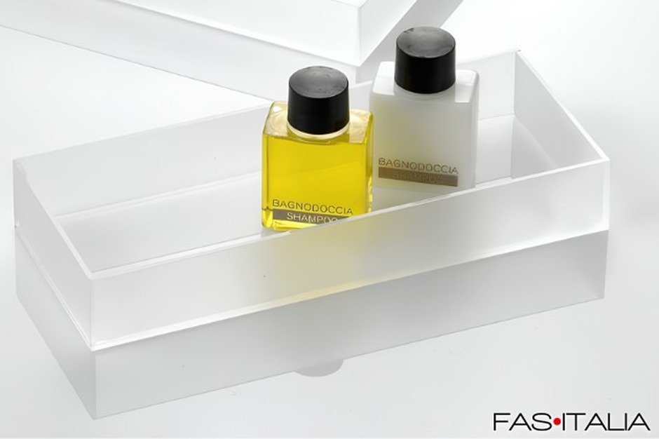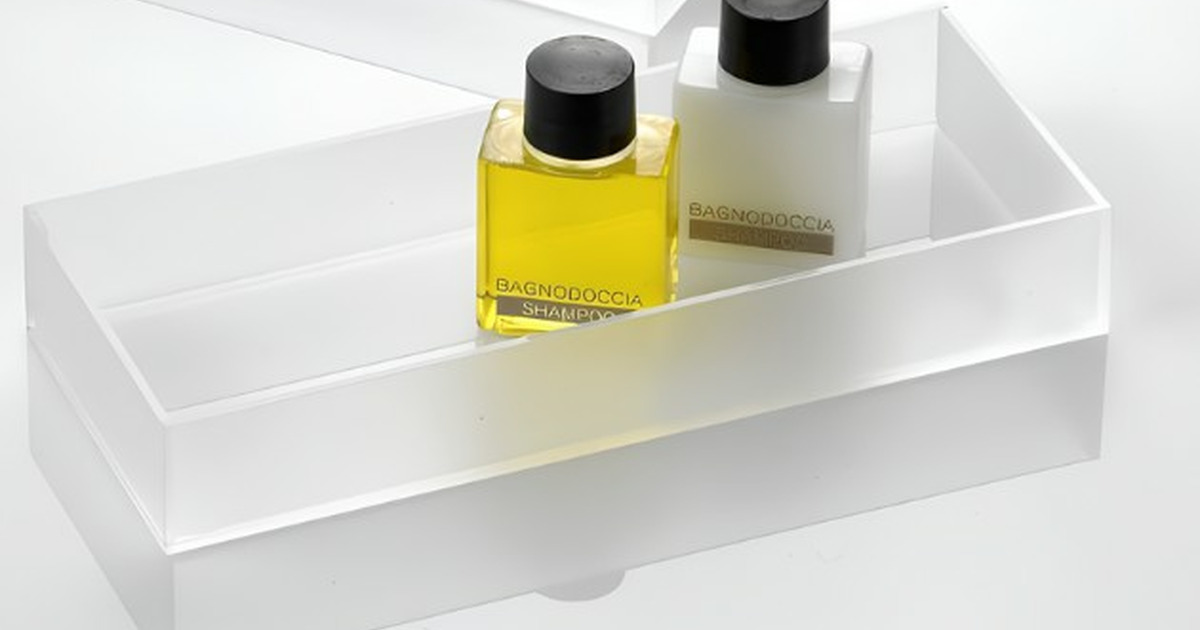 Realizzato in plexiglass satin, questo vassoio unisce leggerezza, resistenza e facilità di pulizia, risultando ideale per l’utilizzo quotidiano in camera. La forma è capiente e permette di alloggiare comodamente flaconcini di cortesia, saponette e altri accessori di benvenuto, contribuendo a mantenere il bagno ordinato e ben organizzato.