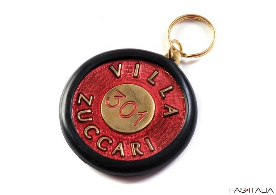 Portachiavi albergo rotondo in ottone massiccio con logo in rilievo