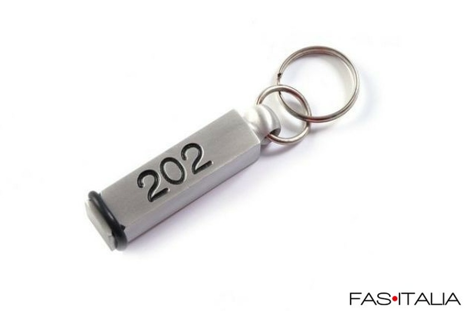 L’anello paragraffi in gomma aiuta a ridurre rumori e urti, proteggendo gli infissi. La personalizzazione incisa e smaltata, realizzata con lavorazione artigianale Made in Italy, consente di adattare il portachiavi alle specifiche esigenze dell’Albergo.