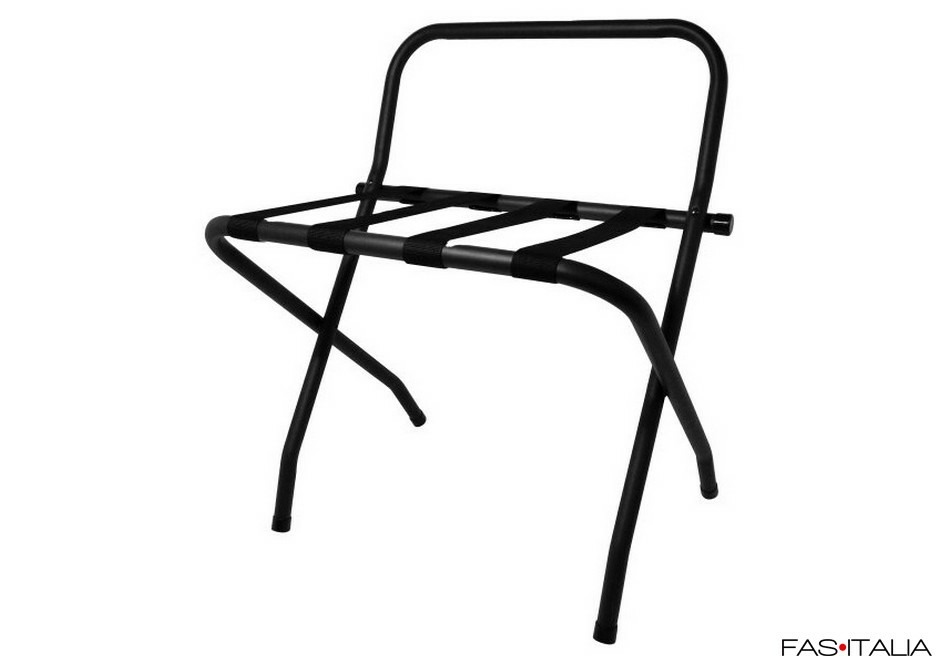 Realizzato in struttura tubolare d’acciaio nera con fasce in nylon, monta piedini in plastica che proteggono il pavimento da graffi. Con sponda di contenimento laterale, aggiunge stabilità al bagaglio, evitando spostamenti indesiderati. Ottimo per garantire praticità e comfort all’ospite, facilita anche il lavoro del personale delle pulizie e dell’allestimento camere.