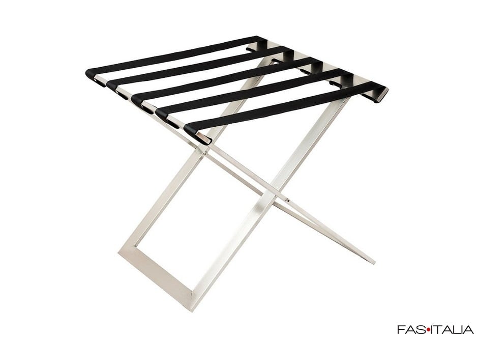 Reggivaligia Hotel Design: inox satinato con fasce nere, pieghevole e elegante