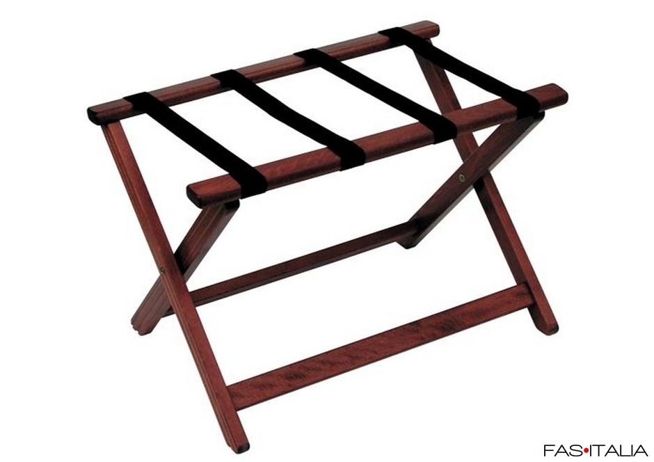 Questo portavaligie è dotato di cinghie in tela che sostengono i bagagli con sicurezza; è pieghevole, ideale da chiuso per ottimizzare lo spazio. Disponibile in vari colori—naturale, ciliegio, wengé, noce; per integrarsi armoniosamente con l’arredo della camera.