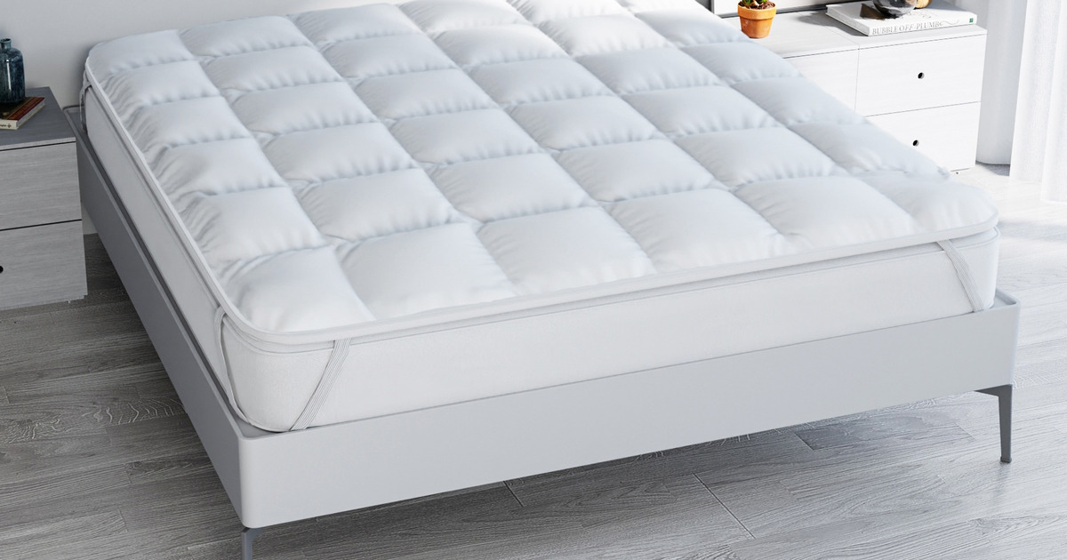 Il rivestimento esterno è in microfibra, mentre l’imbottitura interna è in fiocco di poliestere 300 g/m², materiale leggero e adatto a un utilizzo quotidiano. I quattro elastici laterali garantiscono un fissaggio stabile al materasso, anche con cambi frequenti di biancheria. Il topper è spedito in busta compressa per maggior praticità.