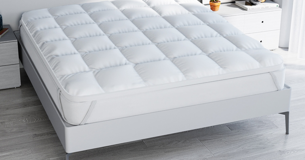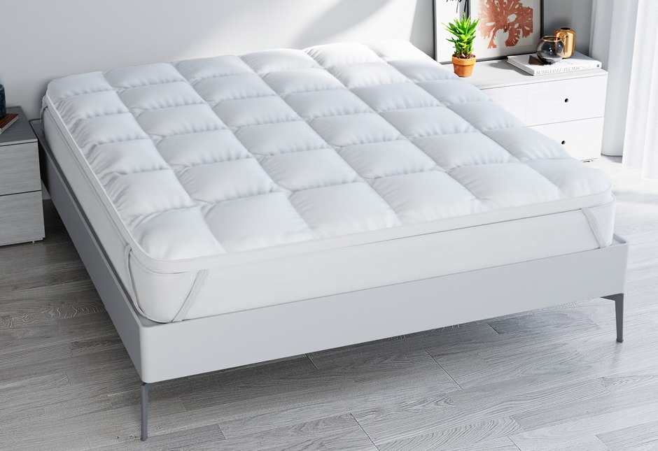 Il rivestimento esterno in microfibra offre una superficie morbida e uniforme, mentre l’imbottitura in fiocco di poliestere 600 g/m² garantisce un sostegno più corposo rispetto ai modelli più sottili. Il bordo perimetrale da 6 cm mantiene la forma del topper nel tempo, mentre i quattro elastici laterali assicurano un fissaggio stabile sul materasso, anche con cambi frequenti della biancheria.