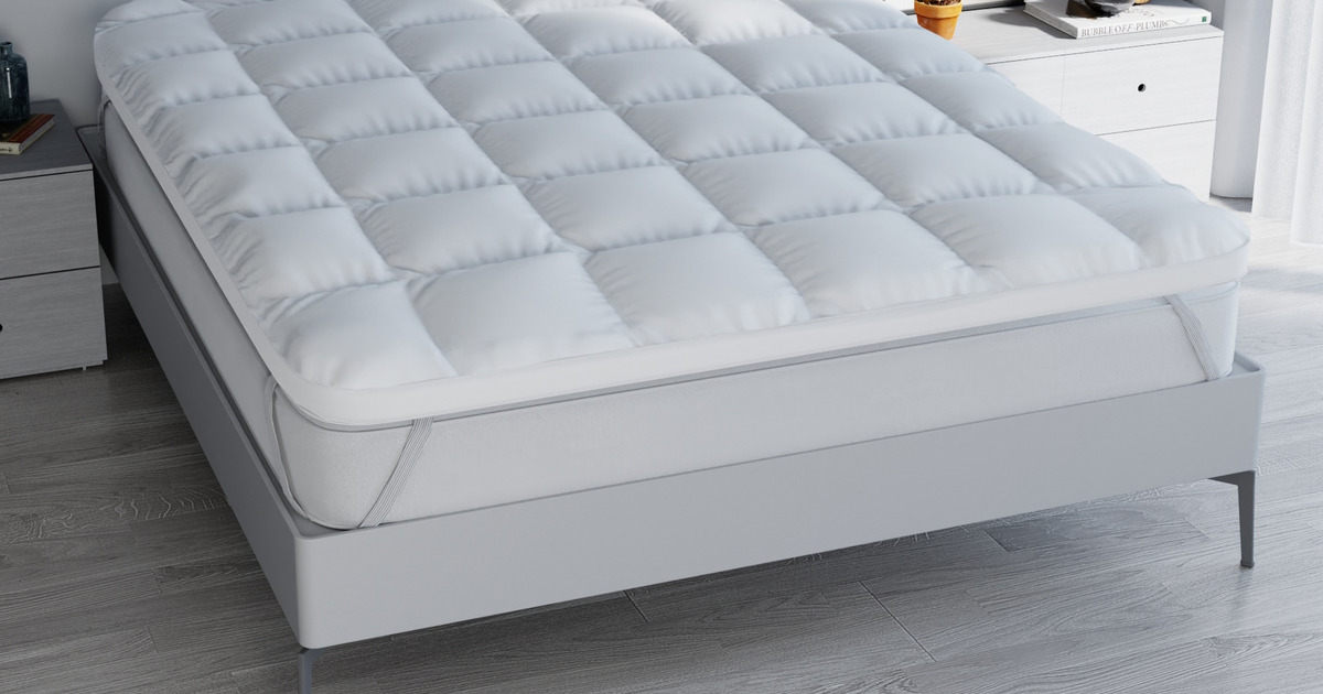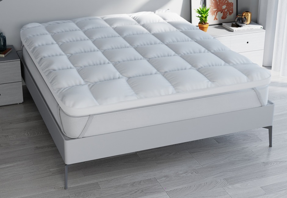 Il tessuto esterno è realizzato in 100% cotone, piacevole al tatto e naturalmente traspirante. L’imbottitura interna è composta da microsfere di poliestere 1100 g/m² ad effetto piuma, studiate per favorire una costante circolazione dell’aria e mantenere il topper fresco e utilizzabile in tutte le stagioni. I quattro elastici laterali assicurano un ancoraggio stabile al materasso, anche in caso di utilizzo intensivo tipico delle strutture ricettive.