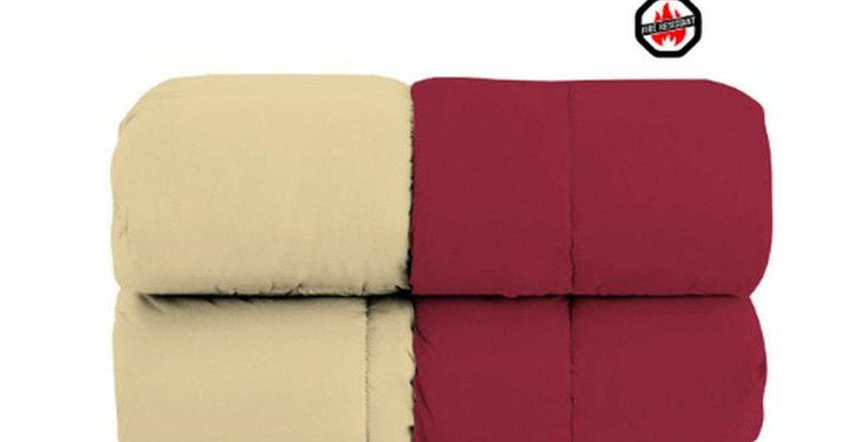 Il tessuto esterno è in microfibra, composto al 50% da poliestere e al 50% da poliestere flame retardant, mentre l’imbottitura è in fiocco di poliestere autoestinguente. La grammatura complessiva di 370 g/m² (imbottitura 200 g/m²) assicura un buon isolamento termico, garantendo calore costante nelle notti più fredde. La trapuntatura a fasce da 30 cm mantiene l’imbottitura omogenea evitando spostamenti interni.